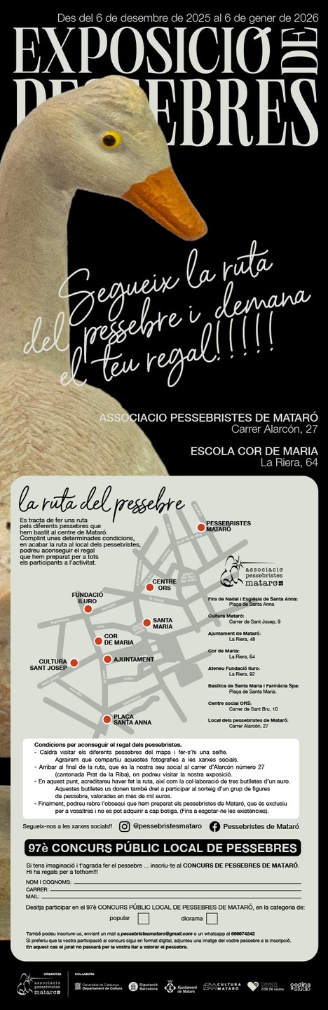 Com ja és tradició, torna la Ruta dels Pessebres, una activitat pensada per descobrir i gaudir dels diferents pessebres que hem bastit al llarg del centre de Mataró.