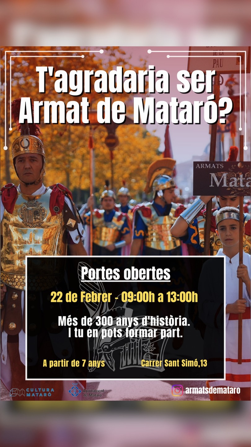 Vols saber com es viu una de les tradicions més emblemàtiques de la ciutat? Els Armats de Mataró, amb més de 300 anys d'història, organitzen una jornada de portes obertes perquè puguis conèixer de prop la seva història, el seu funcionament i el paper de les diferents tropes.